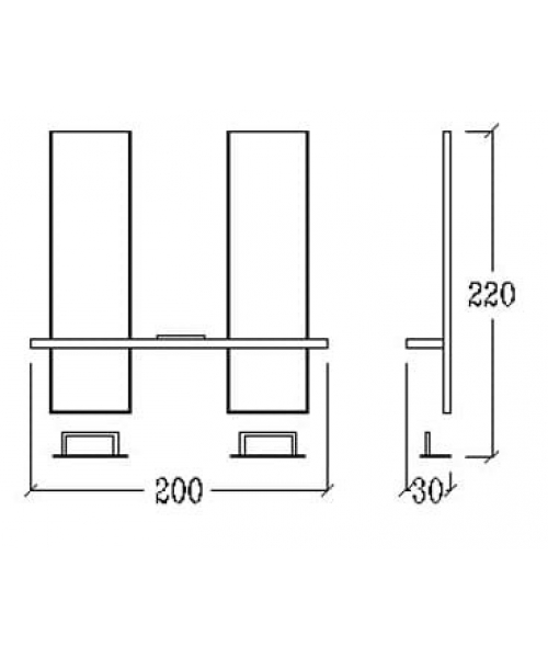 Двойное настенное рабочее место мастера, объединенное одной полкой из выкрашенного дерева. Высокие зеркала в алюминевой раме, световая инкрустация в нижней части. Подножка металл. Размер:200х30х220