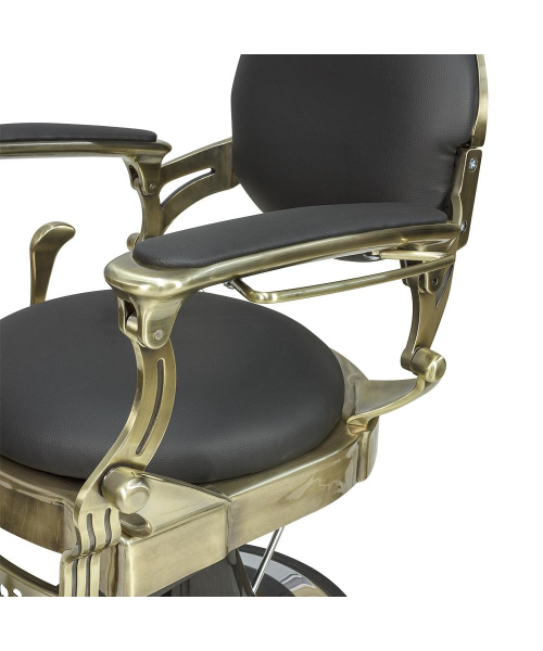 РоссияКресло мужское барбер "Ричард" полированный каркас медного цвета - удобное сидение оснащено широкими подлокотниками для комфорта посетителей. Для поддержания шеи и головы клиента в конструкции предусмотрен мягкий подголовник. Практичная подножка не допустит усталости ног клиентов. Металлическая круглая основа с хромированным покрытием отличается прочностью и устойчивостью. Каркас изготовлен из качественной стали и многослойной фанеры. В качестве наполнителя использован эластичный поролон. Обивка выполнена из экокожи. Материал легко очищается от загрязнений, не боится влияния дезинфицирующих и моющих средств. Благодаря своей структуре экокожа не протирается и долго сохраняет красивый внешний вид. В дизайне кресла присутствует много металлических деталей и фурнитуры под медь или шагрень. Подлокотники и подставка на подножках обиты экокожей, что придает креслу большей солидности, а клиенту максимального комфорта. Гидравлический подъемник, используемый для подъема кресла, способен выдержать высокие нагрузки. Для регулировки угла наклона спинки и подножки используется надежный пневматический механизм. Подъем подголовника осуществляется с помощью механики.