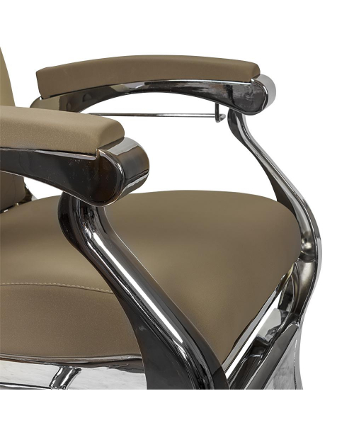 Для регулирования высоты сидения применяется гидравлический подъемник. Подголовник кресла поднимается, что удобно во время процедуры бритья и оформления бороды. С помощью пневматики можно регулировать угол наклона спинки и ножного элемента. Каркас выполнен из качественной стали и установлен на круглую базу. Такой вид опоры очень устойчив и выдерживает большие нагрузки. В качестве обивки использована фирменная экокожа. Материал устойчив к истиранию и долго сохраняет первоначальный внешний вид. Наполнитель изготовлен из упругого поролона.