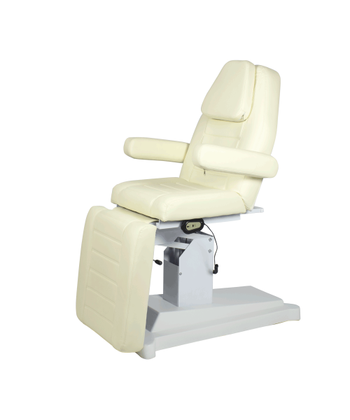 Модель станет незаменимым помощником в салоне красоты или косметологическом кабинете. Оно укомплектовано мощным электроприводом, с помощью которого можно регулировать высоту кресла от 700 до 840 мм. Данная функция позволит мастеру подобрать индивидуальное положение кресла для любых процедур. За комфорт клиентов отвечают эргономичные мягкие элементы, для производства которых используется плотный поролон и качественная мягкая экокожа.