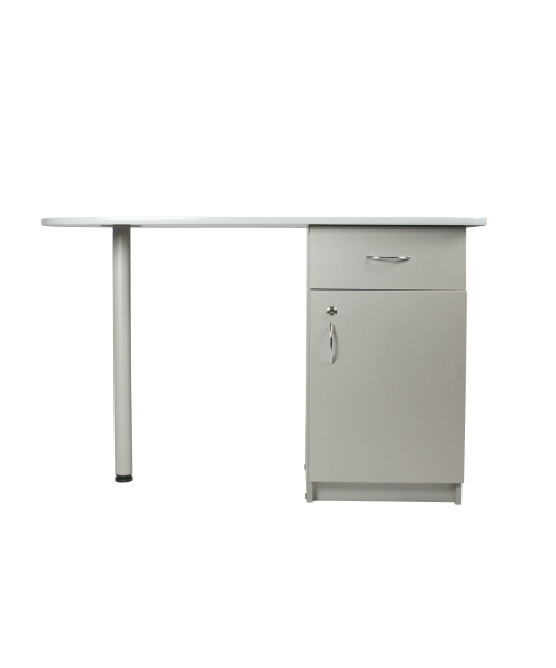 Стол маникюрный "Бридж" с прочной столешницей и тумбой из качественного ЛДСП. В комплектацию входит функциональная тумба с выдвижным ящиком и отделением с дверкой, закрывающимся на ключ. Ручки и замочек из хромированного металла. В закрытом отделении мастер сможет хранить дорогостоящие инструменты и оборудование. Тумба достаточно вместительна и обеспечивает необходимое удобство в работе. Для производства столешницы применяется качественный цельный лист ЛДСП без острых углов, с окантовкой по краям. Размеры столешницы рассчитаны на установку необходимого оборудования, расходных материалов и аксессуаров.
