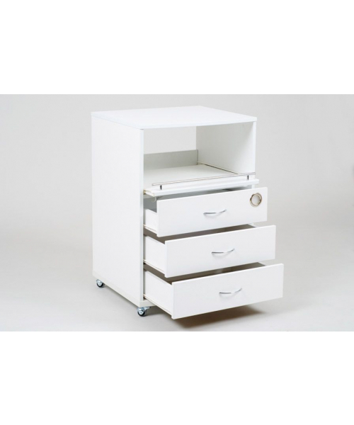 Тележка "Италика" является универсальной моделью, которая подойдет для установки в салоны красоты, стоматологии, центры ногтевого сервиса. Она изготовлена из качественного и практичного ЛДСП материала, который устойчив к влажности, перепадам температуры, химическим и механическим воздействиям. Современный дизайн, выполненный в белом цвете, позволяет ей гармонировать с любым интерьером.