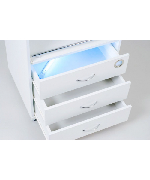 РоссияТележка "Италика" является стильной и многофункциональной моделью. В отличие от своих аналогов она имеет УФ-модуль и выдвижную полку, а также увеличенную рабочую поверхность. Это позволяет рационально разместить все оборудование и инструменты мастера в одном месте. Тележка оснащена резиновыми колесиками, которые позволяют бесшумно и легко перемещать ее по любой поверхности.