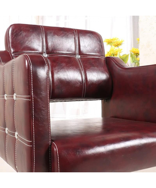 Эта модель очень удобна и гармонично вписывается в интерьер любого стиля. Особенность изделия заключается в декоративном оформлении спинки. Дизайнеры не только создали эргономичную форму, позволяющую мастеру легко работать, а клиенту не ощущать дискомфорта и усталости в спине, но и создали интересное оформление при помощи хрустальных страз. Геометрически правильный узор удачно подчеркивает плавные линии кресла.Качественные материалы и обивка позволяют мастеру не беспокоится о возможном загрязнении изделия. Все материалы легко очищаются при помощи обычных средств.