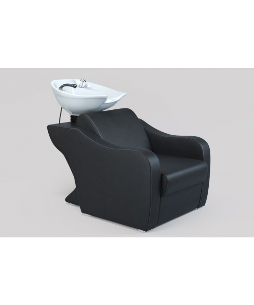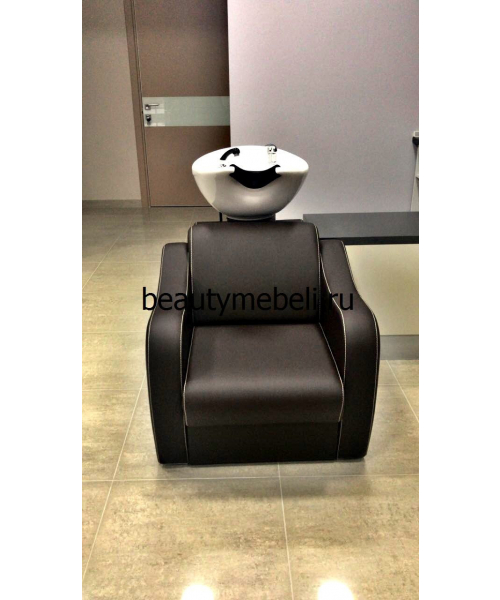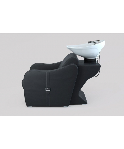 Подстраиваясь под клиента, раковина поднимается и опускается, принимая нужное положение. Стильное основание изготовлено с эргономичной спинкой и удобными мягкими подлокотниками, сиденье – широкое: все для того, чтобы клиенту было максимально комфортно. Боковая часть оформлена элегантным ремешком с пряжкой, по краю материал оформлен качественной строчкой – эти нюансы делают модель красивой и современной, моментально привлекая внимание посетителей.