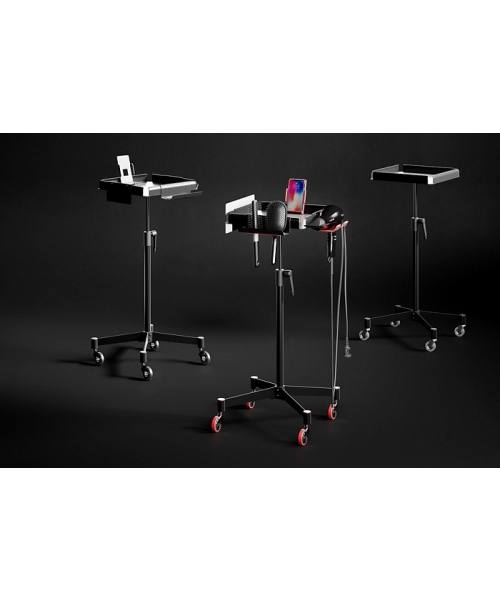 КитайАссистент колориста NA0057-оснащен надежными прорезиненными колесиками, обеспечивающими бесшумное и быстрое перемещение. Столик выполнен из пластика, ножка и основание – из хромированной стали. Предусмотрены отверстия для инструментов, углубления для чаши и ролик для фольги. В комплекте две кисточки, две чаши и шейкер.