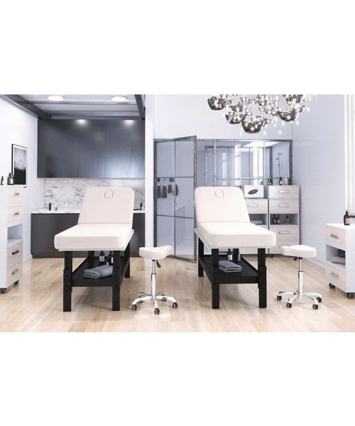 Массажная СПА-кушетка "VISPA" имеет механические регулировки угла высоты и угла наклона спинки, а также удобную полку для аксессуаров. Основание выполнено из массива бука.